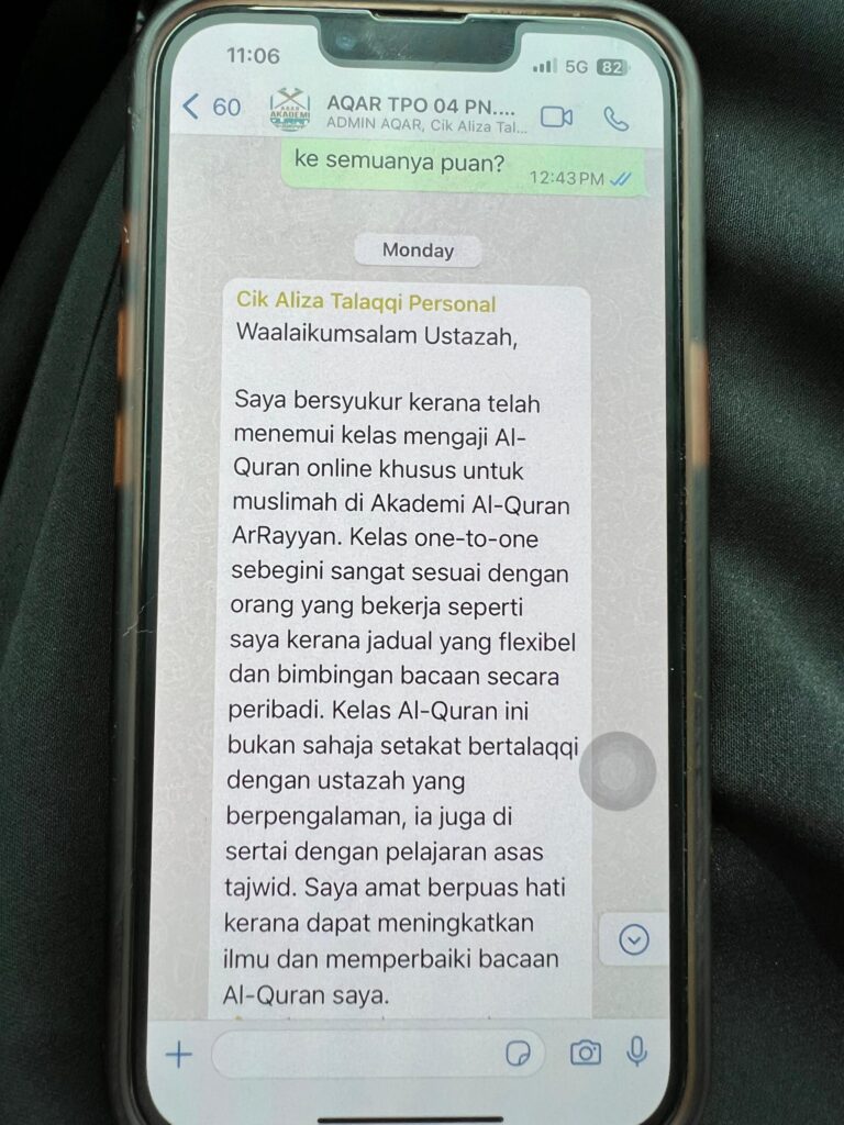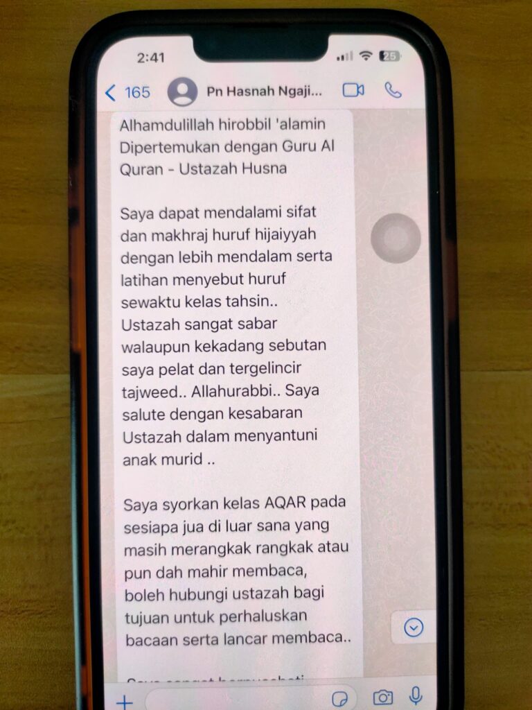 AQAR kini membuka peluang untuk kelas mengaji secara PRIVATE, khusus untuk para suri rumah sepenuh masa, wanita bekerjaya, dan pesara wanita