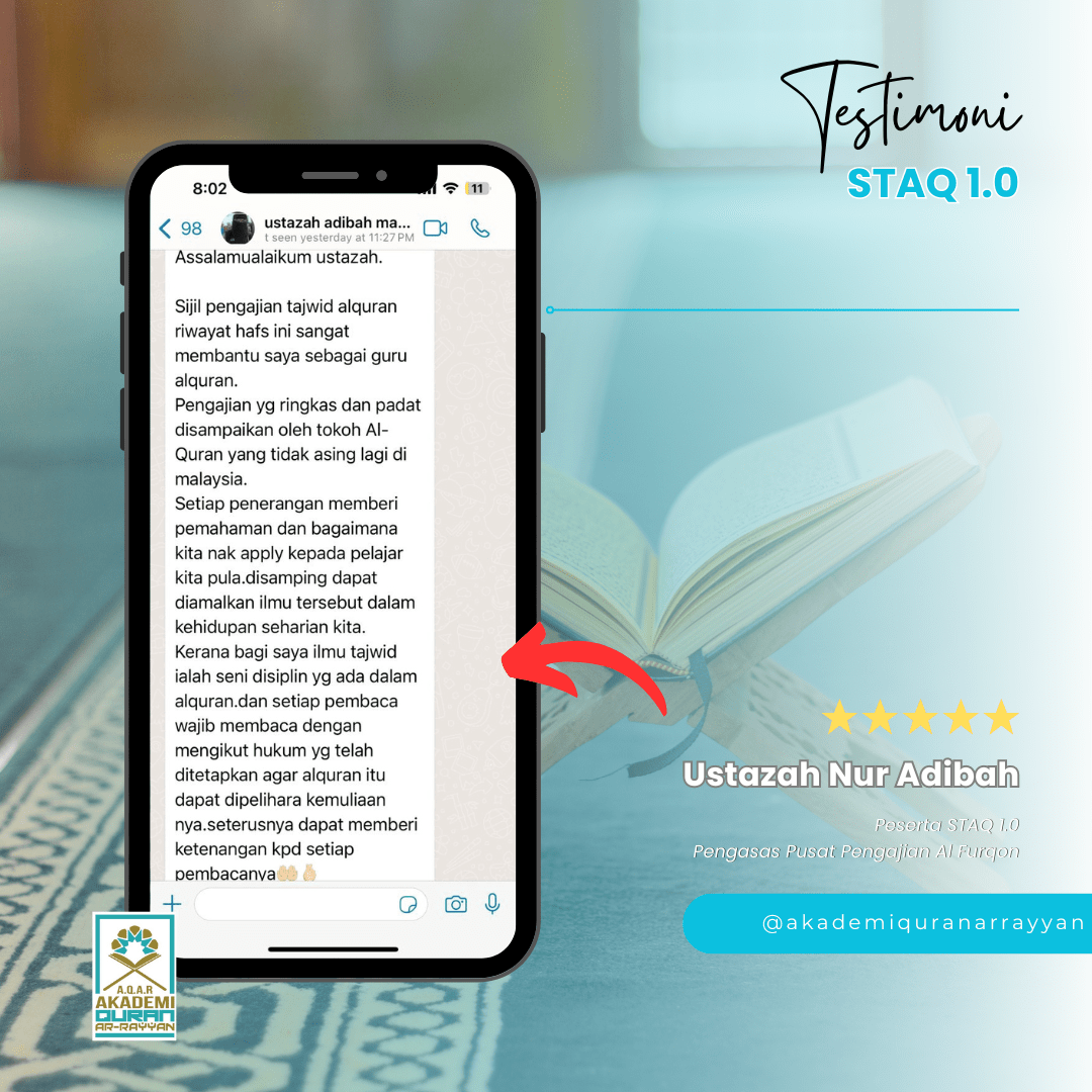- Dibimbing oleh 3 tokoh pakar Ilmu Tajwid Al-Quran iaitu Prof Madya Dr. Khairul Anuar Mohamad, Ustaz Dr. Anuar Hasin dan Ustazah Ruzana Natiah