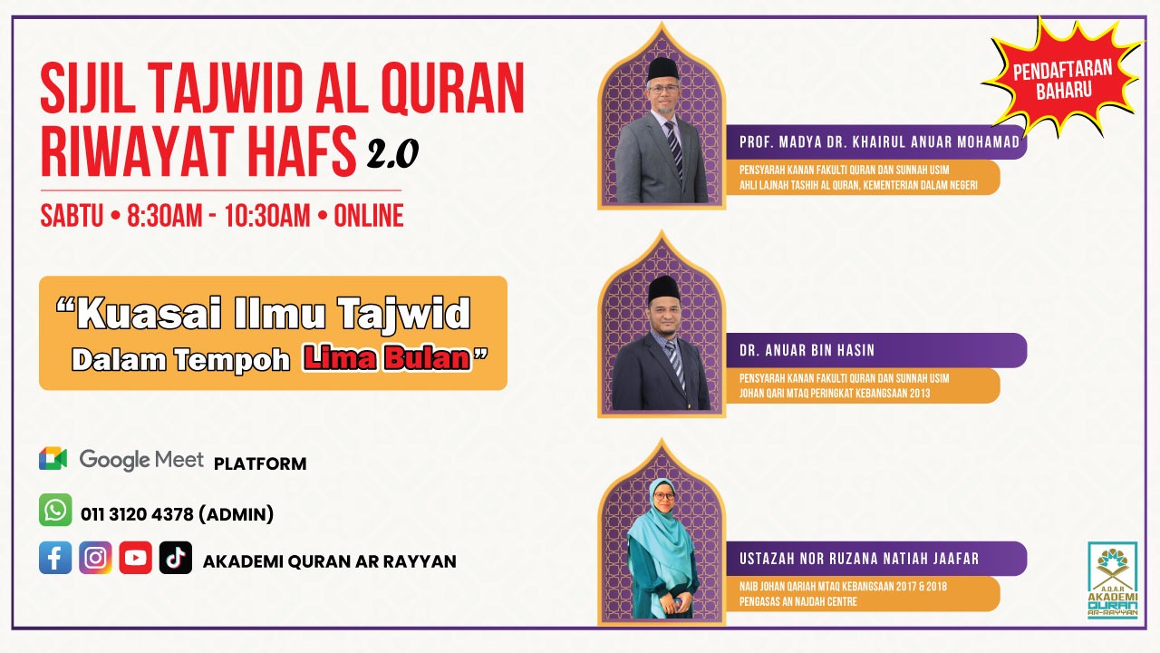 PENDAFTARAN SIJIL TAJWID AL QURAN RIWAYAT HAFS 3.0 DIBUKA!